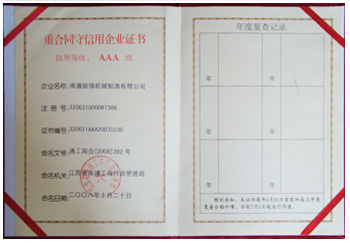 江蘇振強機械科技股份有限公司 >> 公司簡介 >> 資質證書 >> 重合同守信用企業(yè)證書