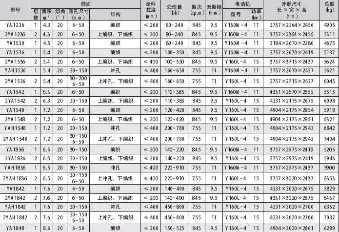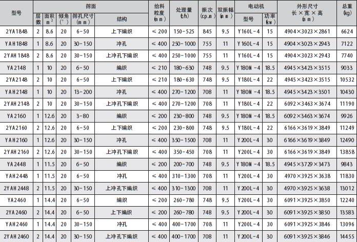 YA型圓振動(dòng)篩運(yùn)點(diǎn)軌跡為圓,可廣泛應(yīng)用于選煤選礦、砂石、建材、煤炭等行業(yè)作為分級(jí)物料的通用設(shè)備。YA型圓振動(dòng)篩結(jié)構(gòu)類(lèi)型